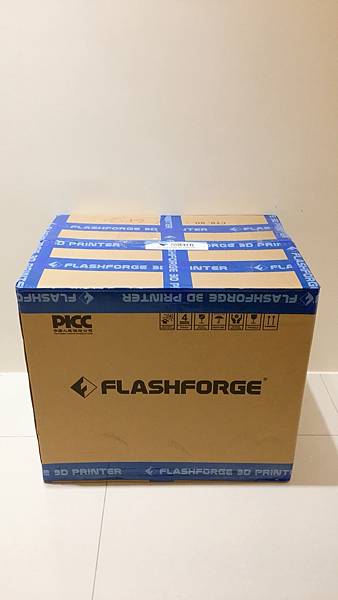 首先機器的外包裝, 紙箱一樣是印有大大的FLASHFORGE的商標, 並且有易碎物品請小心輕放的標示.
