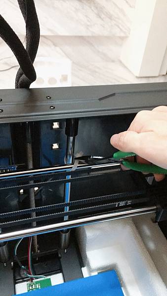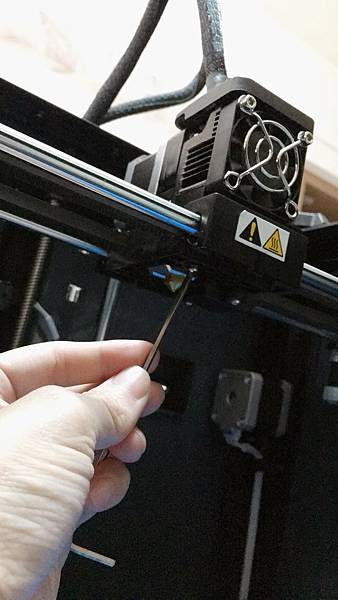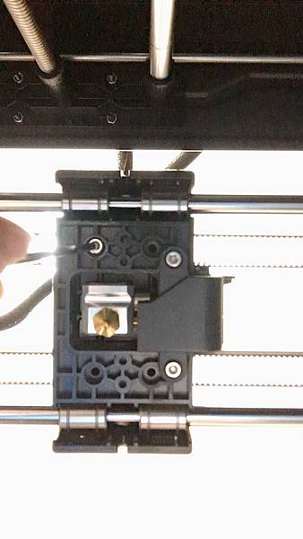 等噴頭和平台移動完後, 我們用機器附的小紙卡, 放在噴頭和底板之間, 要感覺到有點阻力, 又要能夠拖動.