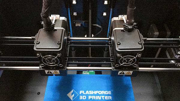 這時左右噴頭可以同時列印模型, 在同樣時間裡面可以一次完成兩個一樣模型.