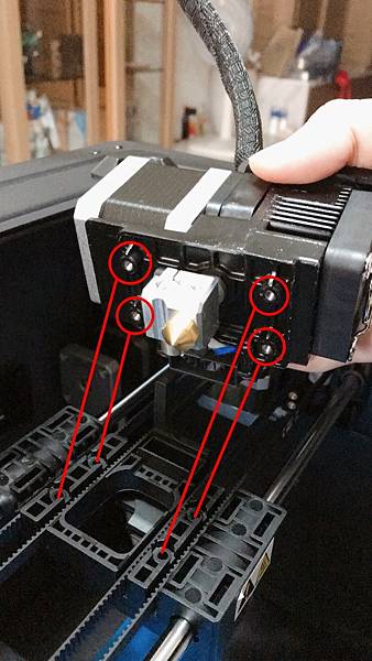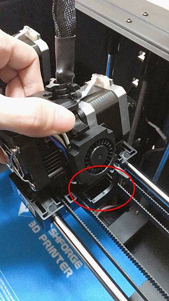 噴頭鎖好後, 就可以來鎖防溢料擋片, 這是防止一個噴頭列印的時候, 另一個噴頭溢料出來.